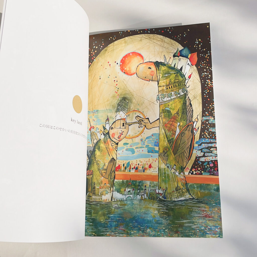 卒業制作で作成した絵本を2001年に製本したもの。 それぞれの思想を持ったそれぞれの国。 バラバラのようでいて、全ては同じ根っこでつながっている。 そんな世界の不思議を描いた絵本。